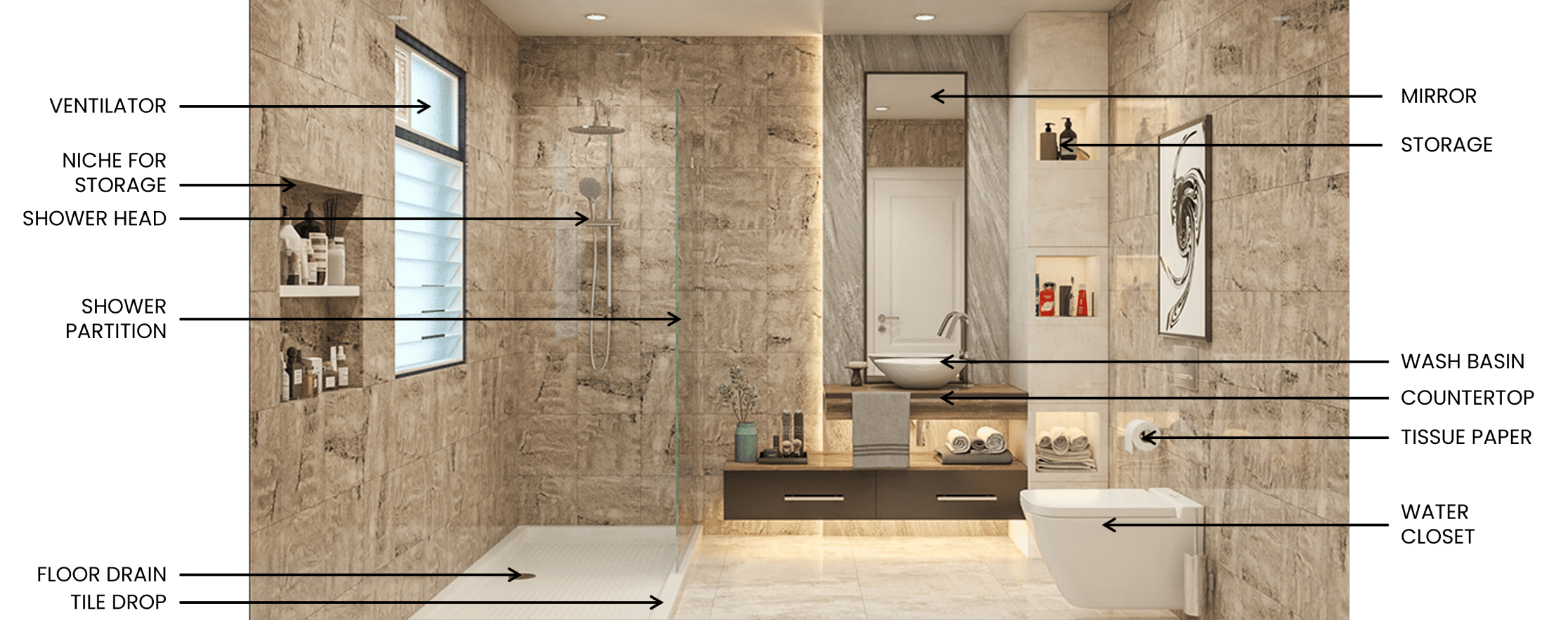 Before diving right into Dry Zones V/S Wet zones, let us look at some crucial factors in designing a residential bathroom which will help us appreciate bathroom designs better: