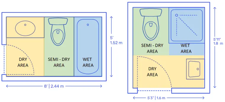 The dry zone is where you spend most of your bathroom time. It includes toilets, sinks, mirrors, cabinets and other furniture and appliances. It is designed to stay dry and comfortable, so you don’t have to deal with moisture and bacteria buildup.